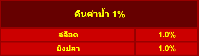 สล็อต + ยิงปลา ทุกเกม ขึ้นไป (ขั้นต่ำ 1 บาท ก็จ่าย )- Cashback 1%